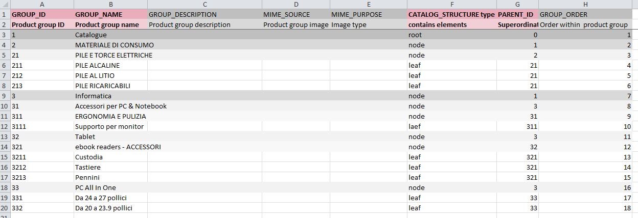 I need to create a product feed, which has the title of the column on 2 lines, and of the category column "the ID" of the main category only and not of the complete path.