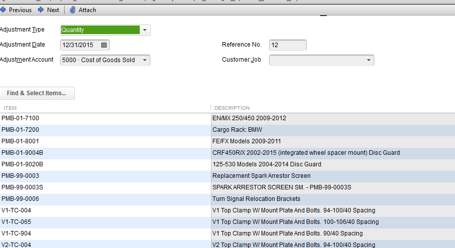 Instead of individual transactions, we would like to have Inventory Adjustment. I have attached a screen capture of an example of a long inventory adjustment transaction.