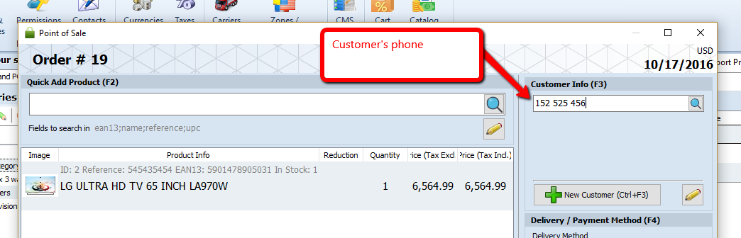 I guess something like this. So you'll be able to fill in phone number and POS will find customer OR his phone