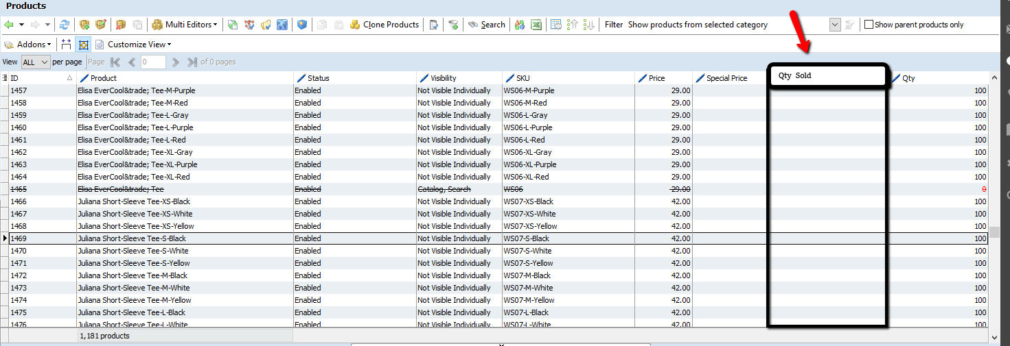 Home > For Customers > Magento Store Manager > Magento Manager Feature Request > Show the "Quantity sold" column in the product grid