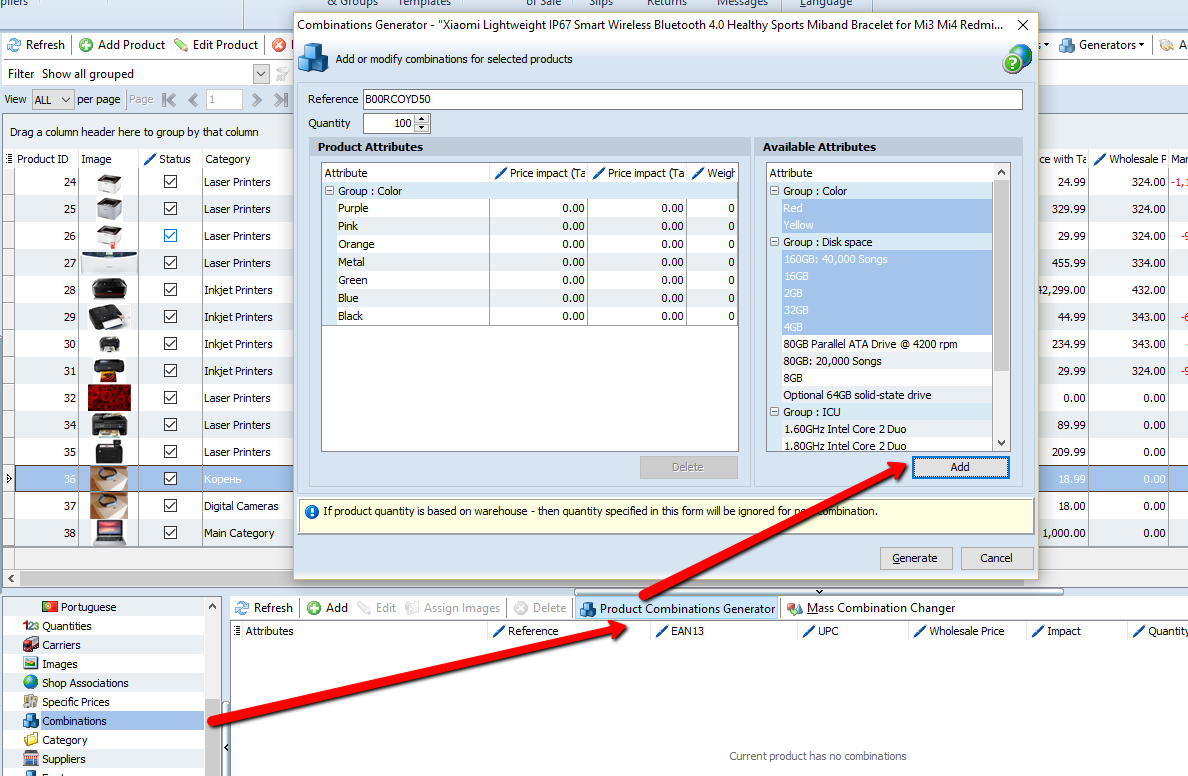 Непонятно, каким образом можно объединить несколько имеющихся товаров в один товар с комбинациями при помощи Генератора комбинаций. Я предложил именно автоматизировать объединение/разделение товаров с минимумом ручной работы.