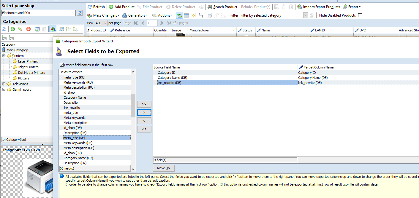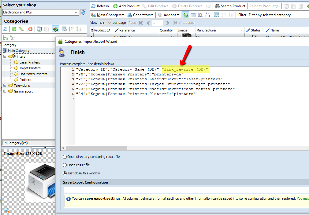1. Export categories ( Cat ID, Cat Name, Cat-Friendly URL