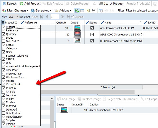 Could you give us screenshot? What place did you mean in Store Manager? ( Product Grid or bottom tab )